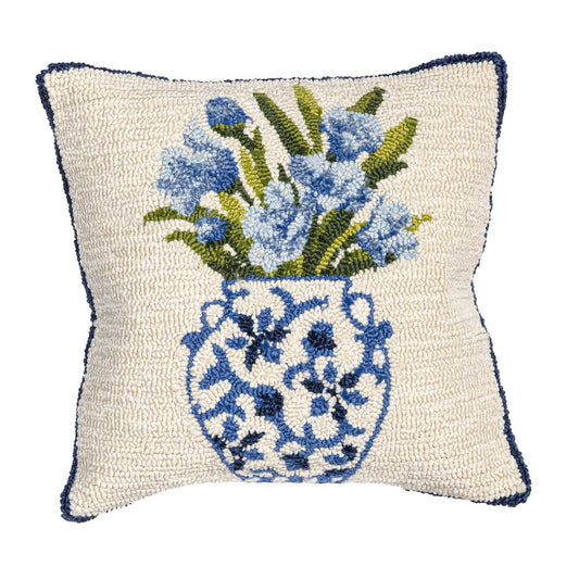 18"x18" Indoor/Outdoor Hooked Pillow - Chinoiserie