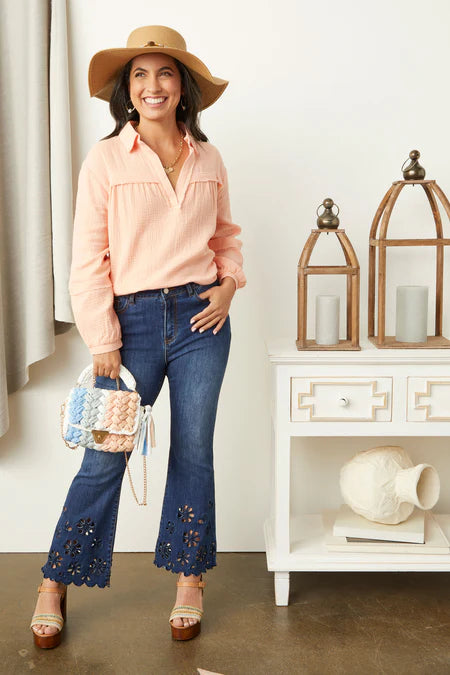 Kacey Long Sleeve Gauze Top - Light Coral