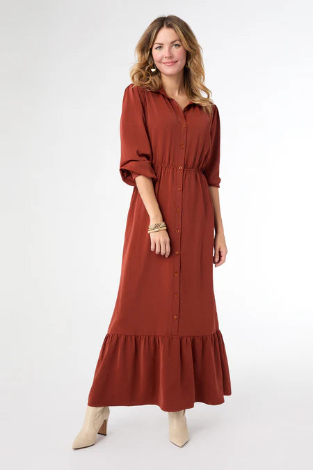 Stay stylish and cozy during the cooler months with the Bixby Long Sleeve Tiered Maxi Dress. This dress is the perfect versatile addition to your wardrobe, with its flowy silhouette and tiered design making it suitable for any occasion. Whether you're out running errands or attending a special event, this dress has got you covered.