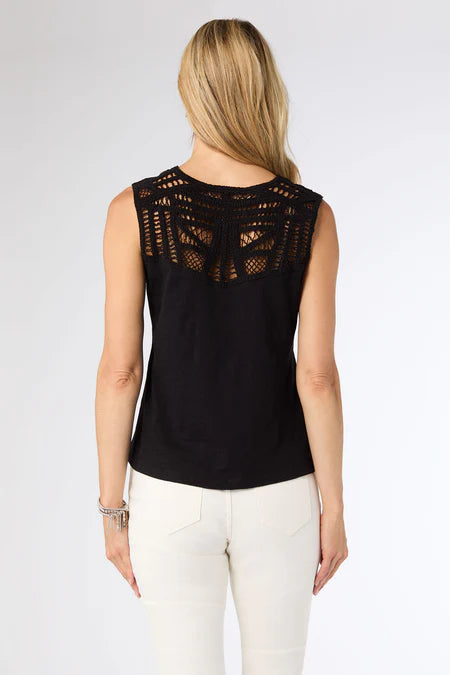 The crochet detail on the sleeves adds a trendy twist to this classic tank top, making it a versatile piece for any occasion. From picnics in the park to outdoor concerts, this tank will have you looking effortlessly chic all season long.