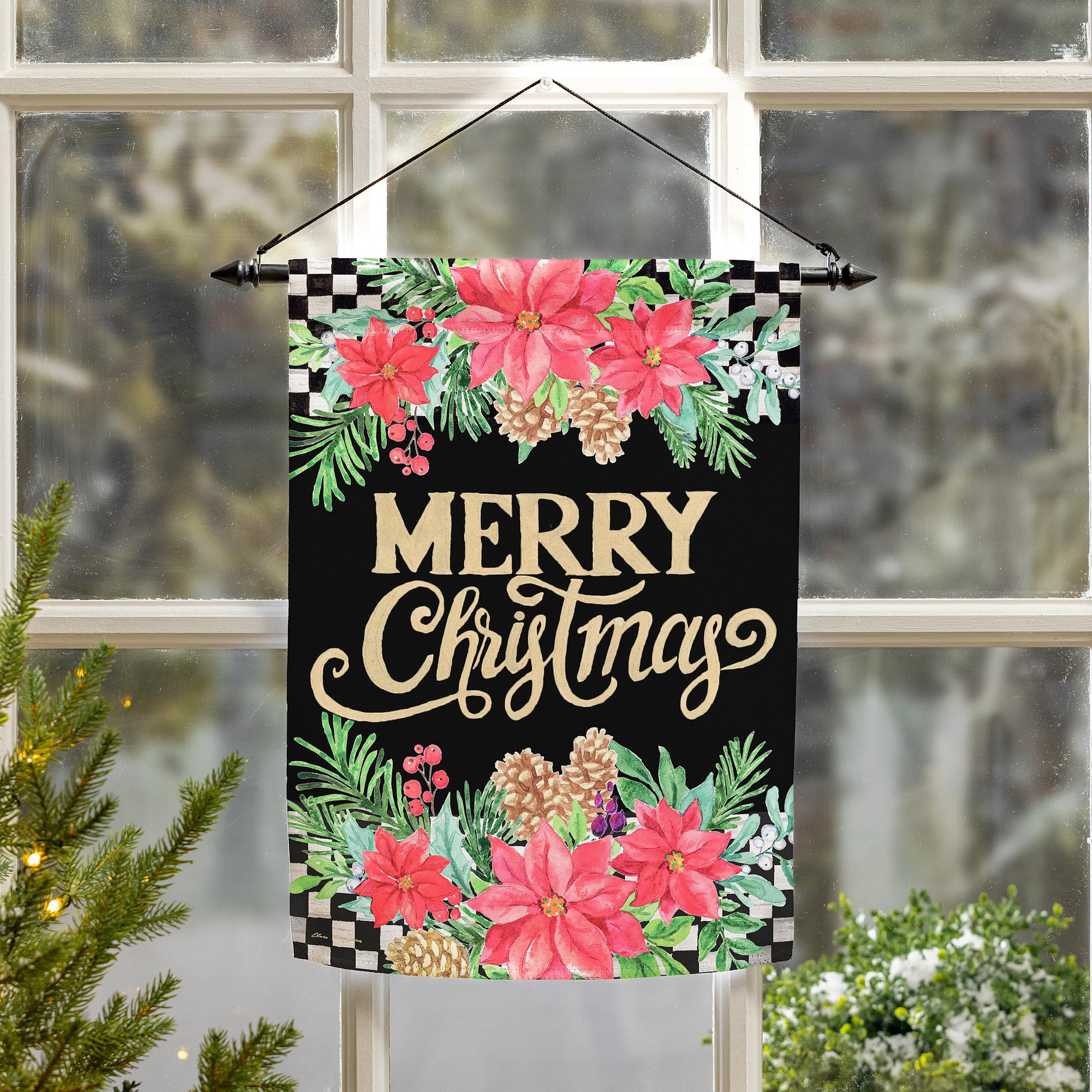 Garden Flag - Floral Checkered Merry Christmas Sue