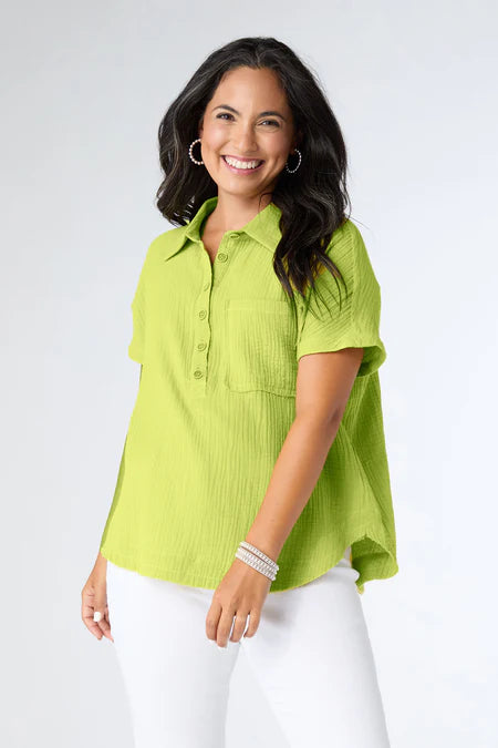 This lightweight top features short sleeves and a convenient chest pocket. The button-down style adds a touch of sophistication to your casual look.
