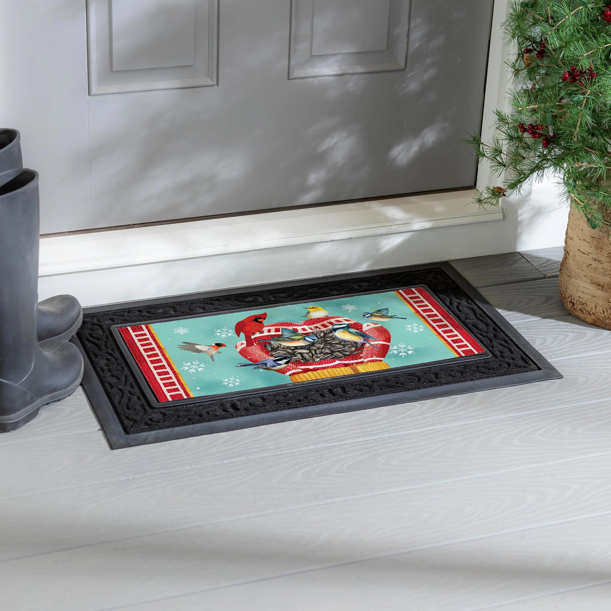 Crafted from heat-sublimated polyester with a rubber backing, this versatile mat is designed to fit perfectly within Evergreen's switch doormat bases. The mildew resistant mat is ideal for indoor or outdoor use and features a skid-resistant backing to help keep it in place. This welcoming mat will freshen up your stoop season after season while ensuring your home stays debris-free. For stains, simply spot clean with soap and warm water.