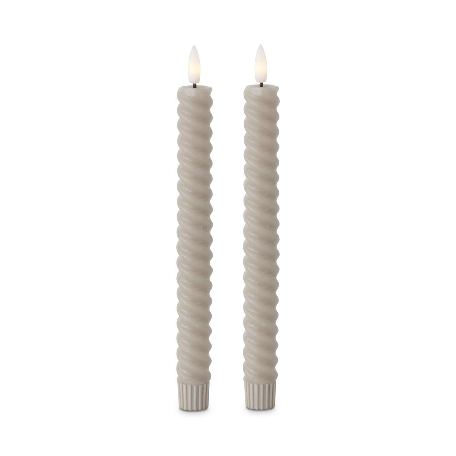 Set of 2 9.75 Inch Taupe Spiral LED Candles w/Time