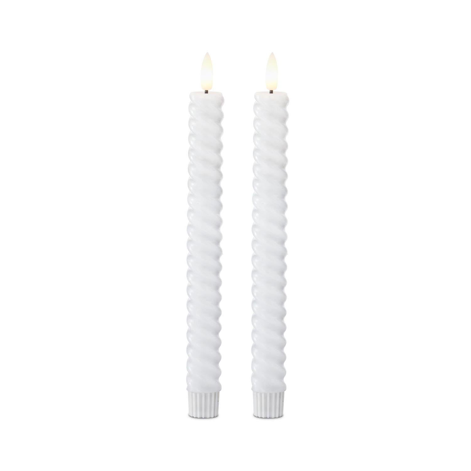 Set of 2 9.75 Inch White Spiral LED Candles w/Time
