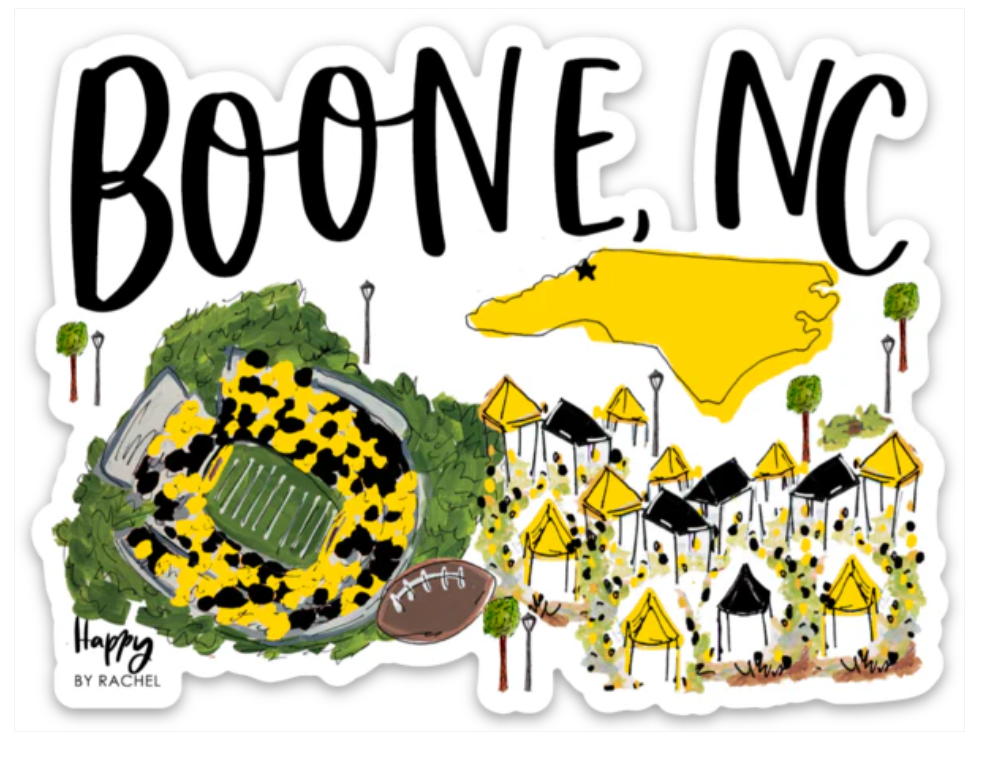 The Boone, NC sticker is made of a thick, durable vinyl that protects from scratches, water & sunlight. Perfect for sticking on your favorite tumbler, laptop, or car! Measures 3"x4".